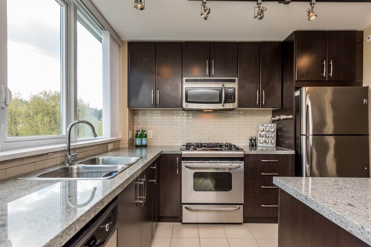 This beautiful 2 bedroom, 2 bathroom condo in the sought after Nahanni Building in Port Moody features floor to ceiling windows throughout for plenty of natural light, newer laminate flooring throughout living area , dark wood kitchen finishings with granite countertops, electric fireplace, huge private balcony with views of Port Moody Inlet and surrounding mountains, good sized bedrooms with ensuite to master which features luxury soaker tub, over 908 sqft of space, in suite laundry, 2 parking included AND storage unit!