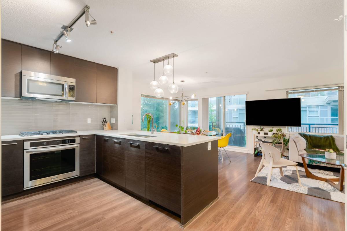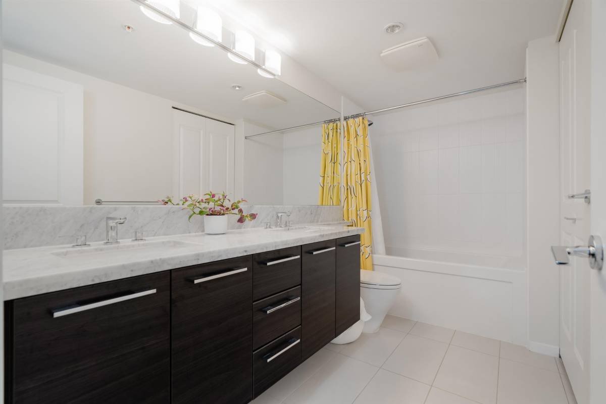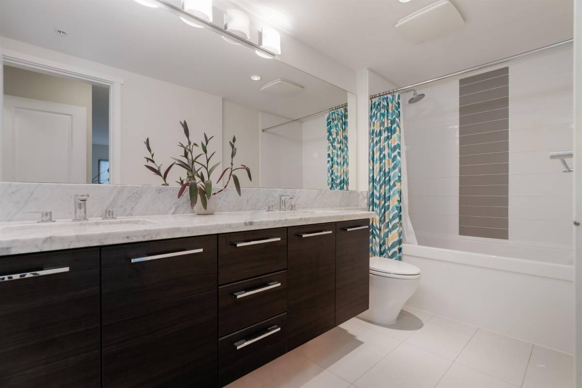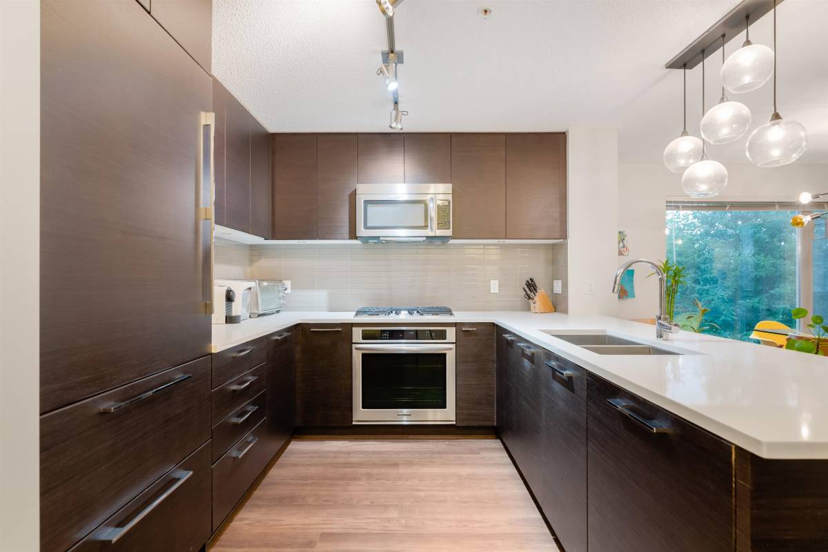 This stunning 3 bedroom, 2 bathroom condo in the heart of Coquitlam Central is an absolute must see! With over 1300 sqft and an over 100 sqft balcony. Kitchen holds gorgeous stainless steel appliances, dark wood cabinetry, hidden fridge, gas range (gas incl. in rental) leading into the expansive dining/living area with big bright windows throughout looking onto greenspace. Luxury master bedroom with walk in closet and beautiful 5 piece ensuite bathroom with tiled shower & soaker tub. In suite laundry, one parking and one storage included.