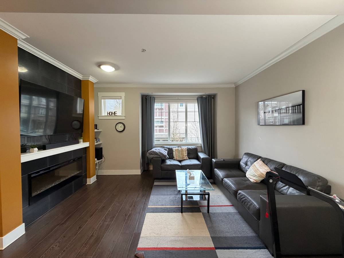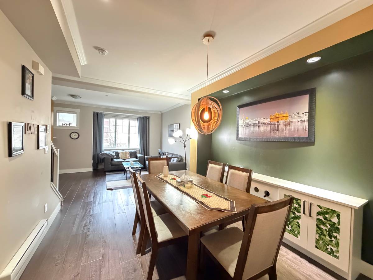 This lovely 3 bedroom, 2.5 bathroom TOWNHOUSE in the Albion Station complex is an absolute must see ! Mixed laminate flooring through main areas and cozy carpeting through bedrooms. High ceilings with a luxury kitchen; stainless steel appliances, stone countertops, white shaker cabinets, small nook- great for additional work space, powder room and private patio backing onto green space. Spacious dining area and separate living space with large windows for plenty of natural light, wall accents for perfect centre point, and sleek glass fireplace. Master bedroom holds walk through closet and 4 piece ensuite bathroom. Both secondary bedrooms are a perfect size with adjacent bathroom with soaker tub. Also features a two car- tandem garage with small backyard space fitted with turf!