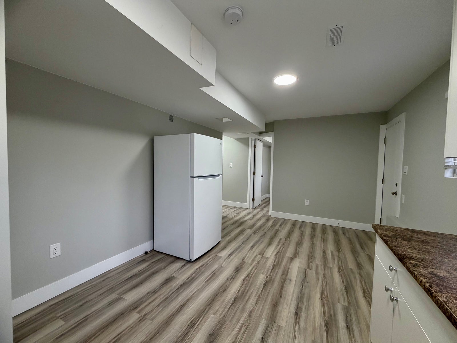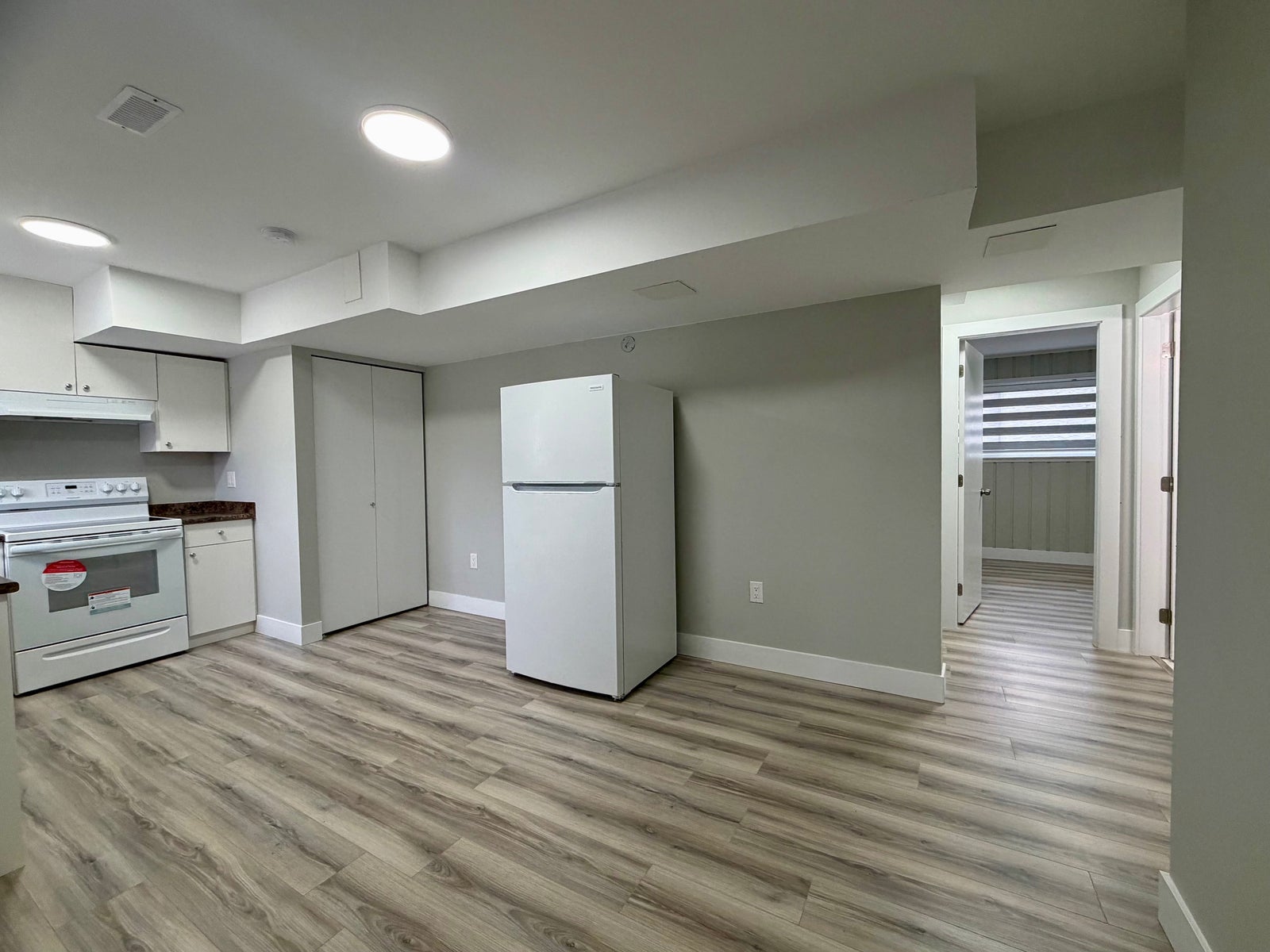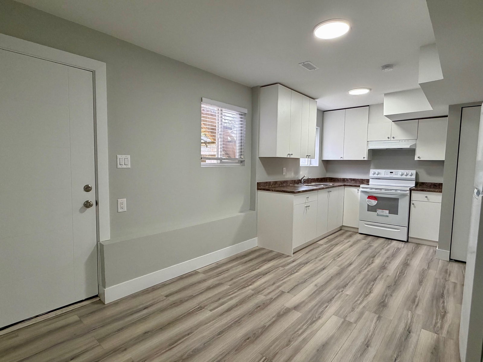 Laminate flooring throughout with brand new stove and refrigerator.