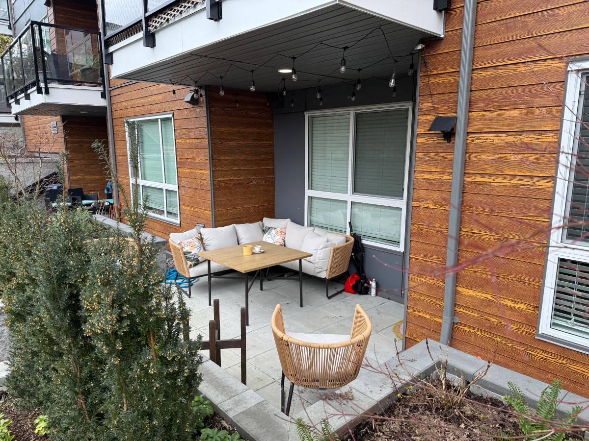 This stunning GROUND LEVEL 1 bedroom, 1 bathroom PLUS DEN condo in the 2 year young Podium building in Maple Ridge. This cozy suite features modern mix of ash/white tones with high gloss cabinetry within the beautiful kitchen. Plenty of storage and counter top space with large centre island, high end stainless steel appliances, stone countertops, and recessed lighting. Grande master bedroom with cozy carpeting, walk in closet, and built in shelving. Luxury main bathroom with mixed shower/soaker tub, tiled backsplash and large vanity. The den is a perfect size for office space or guest suite. Wrap around windows for plenty of natural light. Large private patio overlooking the quiet exterior of the complex. One secured parking and storage locker included.