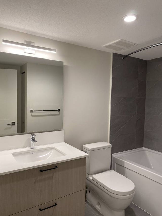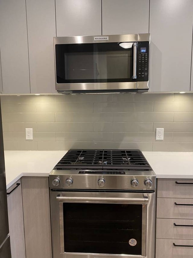 This 4 year old STUNNING 2 bedroom, 1.5 bathroom with ROOF TOP PATIO townhouse in Coquitlam features a perfect layout with above ground entrance leading into the open concept living space/kitchen. Large windows for plenty of natural light, stone countertops with dark accent finishings, top of the line stainless steel appliances, under cabinet lighting, tile backsplash, and plenty of cabinet storage. Powder room on main floor leading up to the second floor which holds the main luxury bathroom with stunning soaker tub, floor to ceiling tiled walls, rain shower head, and additional linen storage closet. Side by side bedrooms with master bedroom containing beautiful walk in closet. Last but not least, top floor leads to HUGE- over 400 sqft roof top patio- perfect for this upcoming summer entertaining!