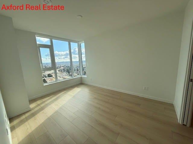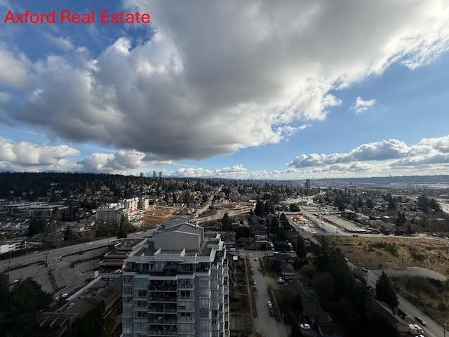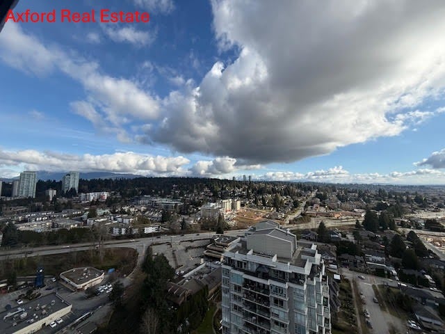 Stunning BRAND NEW with AIR CON corner apartment on the 26th floor with expansive views from central Coquitlam to Fraser River, Port Mann Bridge and more. Walk to skytrain from this spacious 2 bedroom/2 bathroom with large patio, fabulous European style kitchen with loads of cabinets, gas cooktop and great space for a table or island. Primary bedroom with large walk through closet and fabulous ensuite including large shower, loads of shelves and storage. Secondary bedroom with large windows, 4 piece main bathroom, full size laundry and more. Lovely flooring throughout (no carpet). Comes with 1 underground secured parking and 1 storage locker. Fabulous 12,000 sq.ft. of indoor and outdoor amenities including gym, yoga & dance studio, co-working lounge, music rooms, entertaining lounge (in and out), firepits, theatre and games room, golf simulator, and more! Available Now! No smoking, no pets. 1 year lease and credit check required. $2900/month plus hydro (gas and hot water included). Please email Leslie, Axford Real Estate and Property Management for your personal viewing.