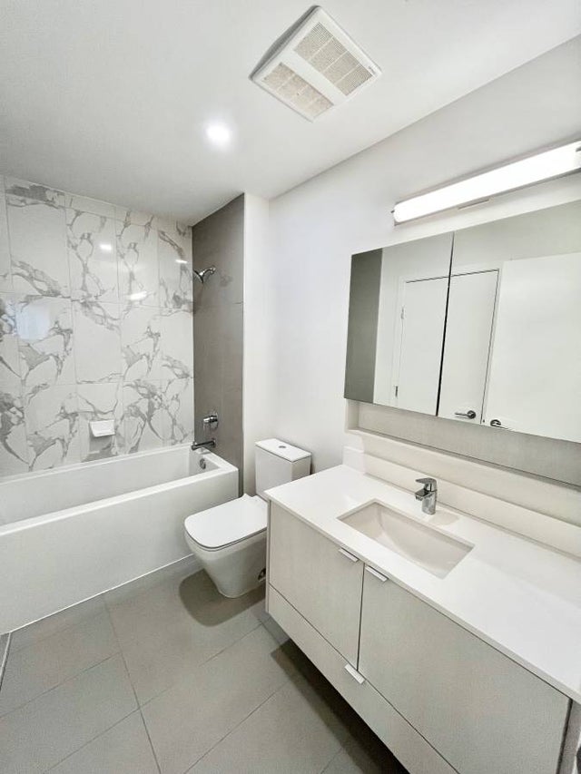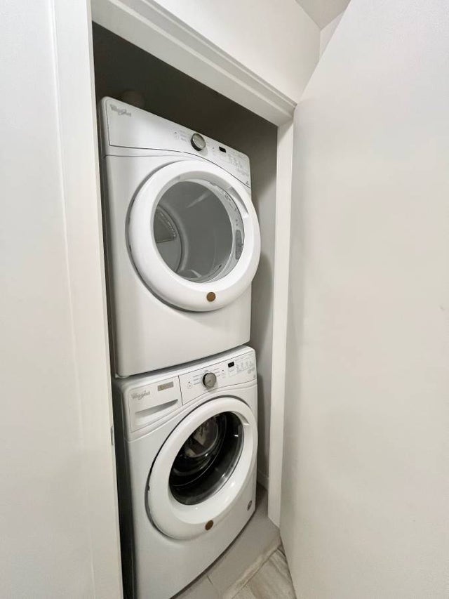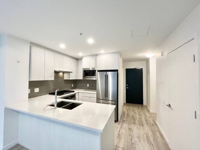 This stunning 1 bedroom-PLUS DEN, 1 bathroom condo in Burquitlam (Coquitlam) is an absolute must see! Laminate floors throughout, large windows for plenty of natural light, fabulous kitchen with top of the line stainless steel appliances, white shaker cabinets, grey herringbone backsplash and quartz countertops round out this open concept kitchen. Luxury 4 piece bathroom with tiles shower and soaker tub. Master bedroom holds two large closets and access to main bathroom. Spacious private patio overlooks the city ! One parking and one storage locker included.
